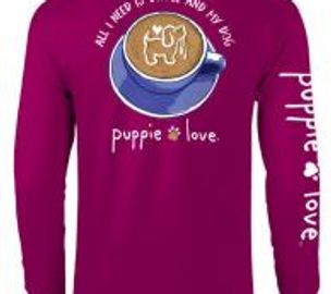 Puppie love and kitty kitty T shirts in long and short sleeved!! Great quality and 10% goes back to RESCUE pups and kitties! Email me if you want to purchase.